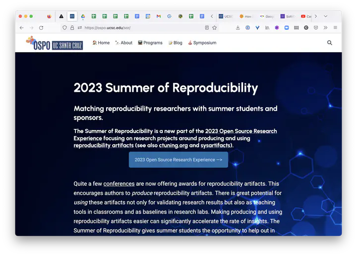 The UCSC Open Source Program Office is excited to introduce the 2023 Summer of Reproducibility (SoR 2023) into the Open Source Research Experience (OSRE) program and is looking for researchers and academics interested in being an SoR mentor.